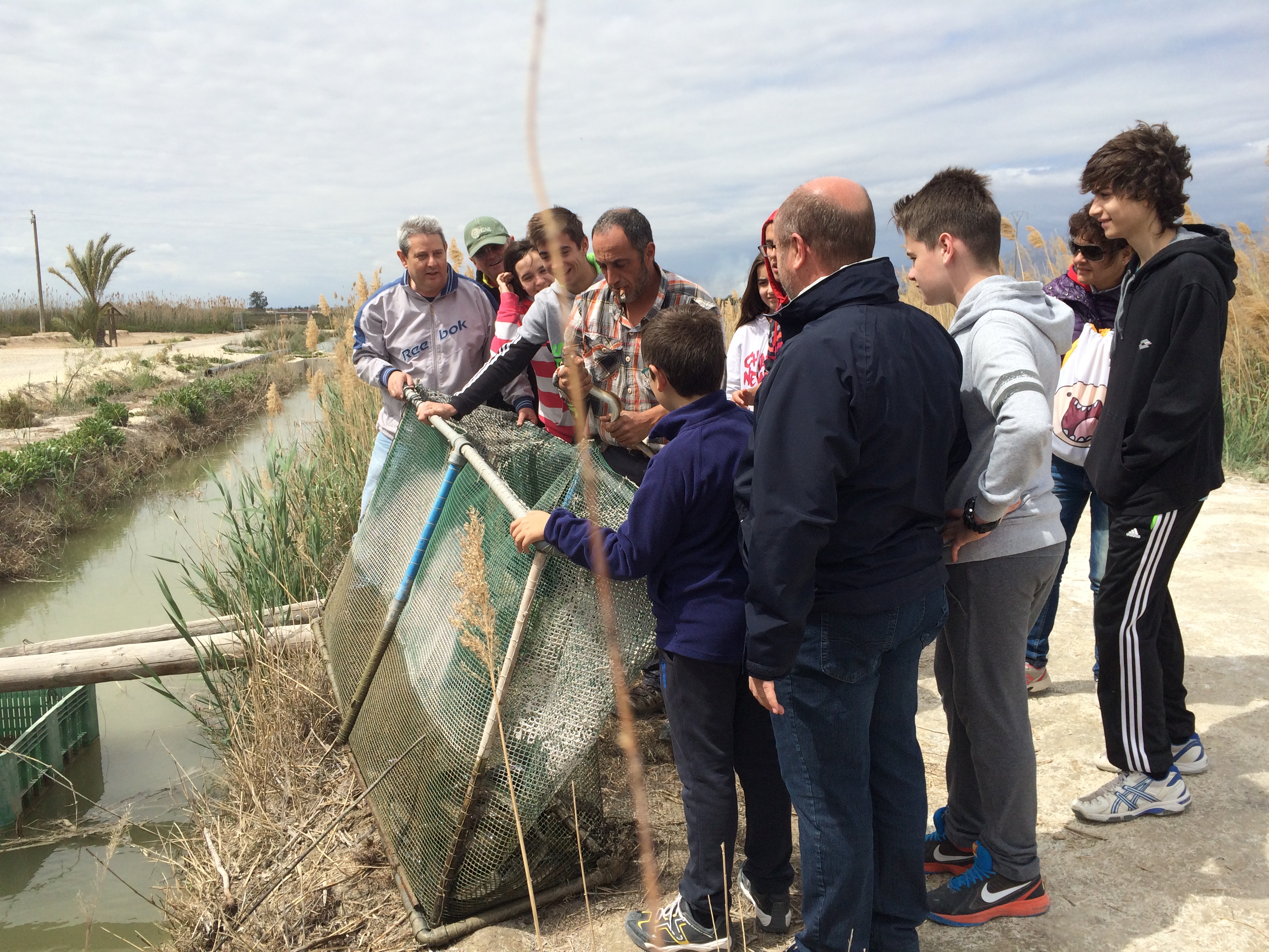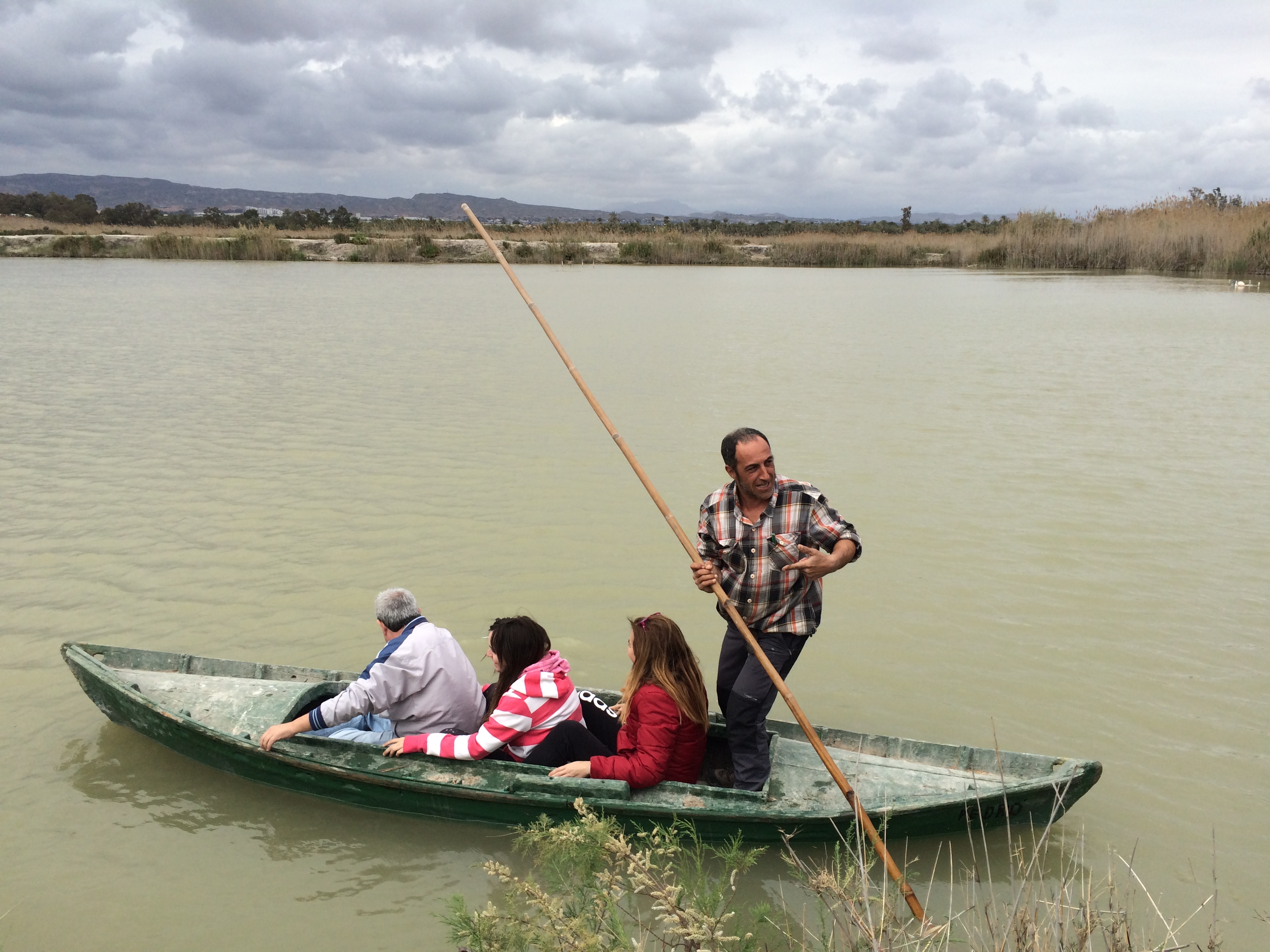 Nosotros elegimos por las características del grupo (cuatro familias con chavales entre 12 y 18 años) realizar una visita guiada por la mañana a las lagunas, charcas y saladares. A mediodía visitamos las piscifactorias de las anguilas y los mújoles donde los chavales pudieron coger algunos ejemplares para poder verlos de cerca y también darles alimento y así poder observarlos. Por la tarde optamos por un paseo en barca por una de las lagunas.