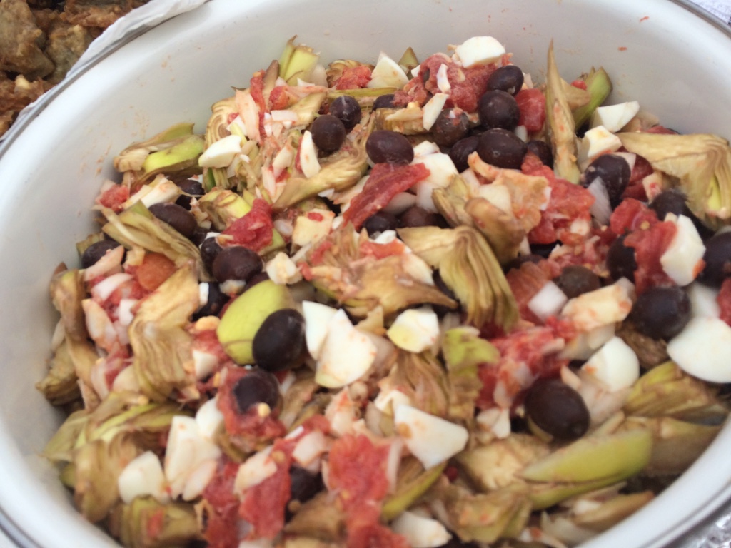 Ingredientes: alcachofa, atún, tomate en conserva, huevo duro, cebolla tierna, olivas de cuquillo.