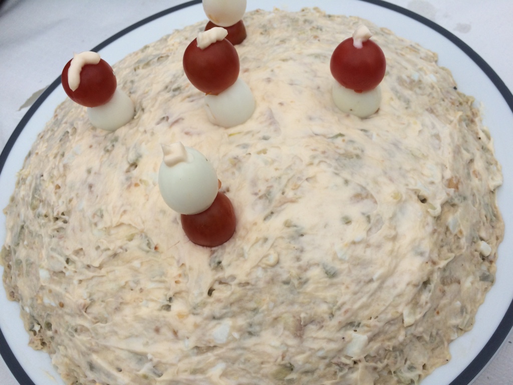 De bocas de mar con alcachofa de conserva, huevo duro y mahonesa.